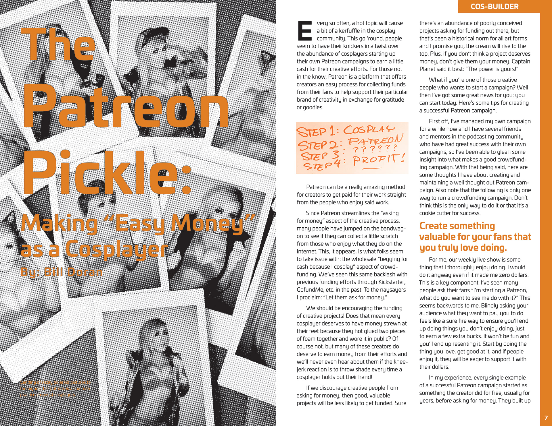 Zine designed for the cosplay builder as a project for a software class. Design utilized photoshop illustrator and Indesign