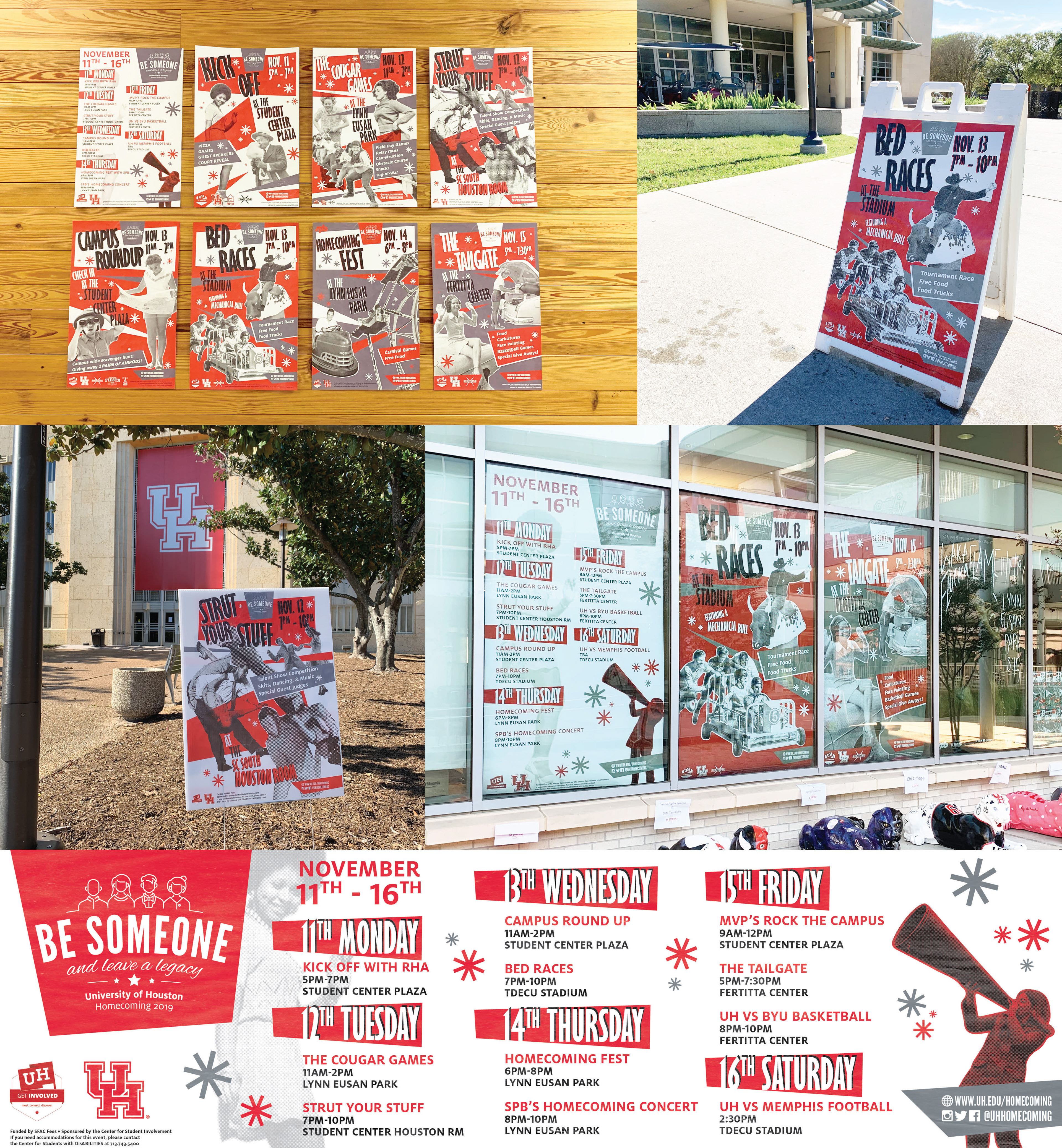 Campaign made for the University of Houston's 2019 Homecoming. Homecoming consisted of a week of events and were designed so each event was recognized as being apart of the week of festivities.